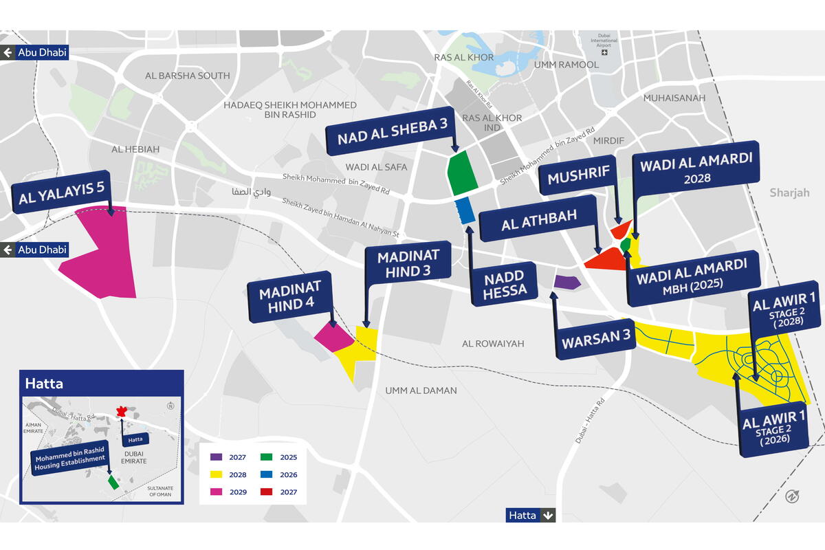 Key projects scheduled for 2025 will see the commencement of road construction in regions such as Nad El Sheba 3 and Al Amardi, aimed at facilitating access to the Mohammed bin Rashid Housing Establishment, which will include 482 housing units. Hatta, another focus area, will also see significant infrastructure development, including internal roads serving a new project featuring 100 housing units.